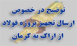 ![]() توضیح در خصوص ارسال تجهیز پروژه فولاد از اراک به کرمان توضیح در خصوص ارسال تجهیز پروژه فولاد از اراک به کرمان | |