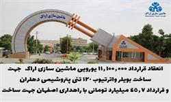 ![]() انعقاد قرارداد ۳ دستگاه بویلر واترتیوب 120 تنی پتروشیمی دهلران انعقاد قرارداد یازده میلیون و صدهزار یورویی ماشینسازی اراک برای ساخت ۳ دستگاه بویلر واترتیوب 120 تنی پتروشیمی دهلران و قرارداد 45.7 میلیارد تومانی با راهداری اصفهان | |